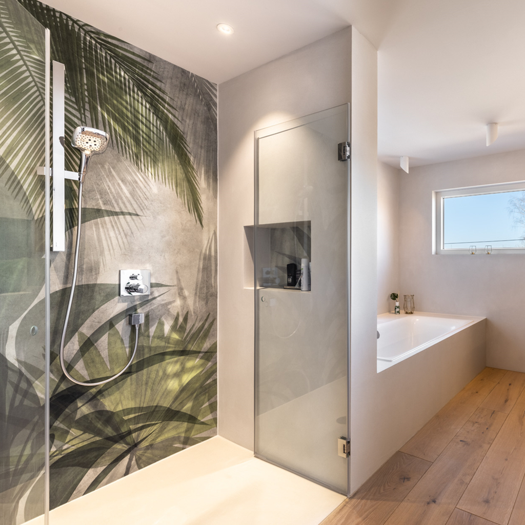 Mit der passenden Versiegelung können Tapeten auch im Nass- und Außenbereich eingesetzt werden.