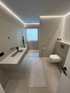 Fugenlose Oberflächen schaffen eine glatte, einheitliche Optik, die Räumen ein elegantes und zeitloses Design verleiht.